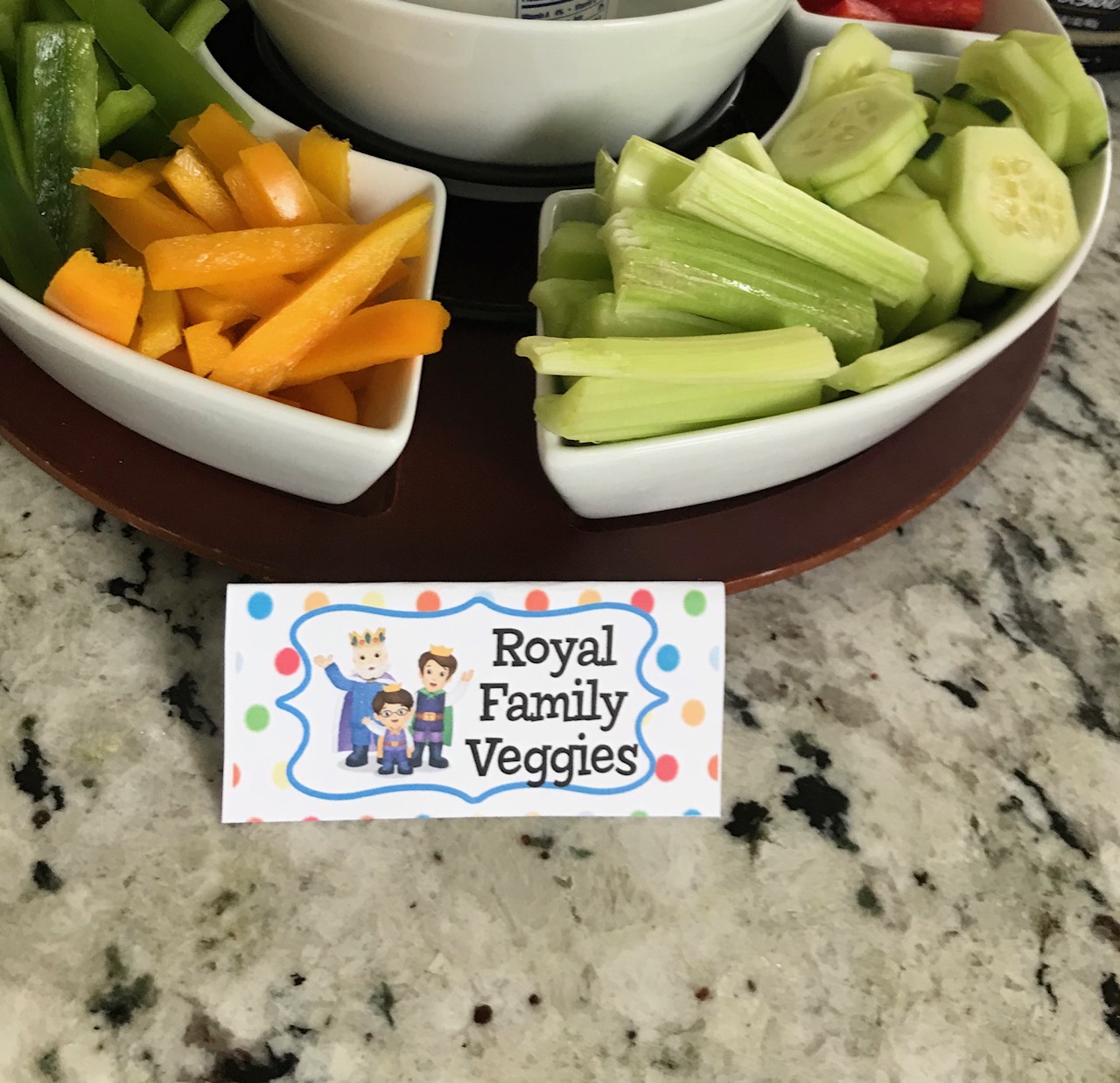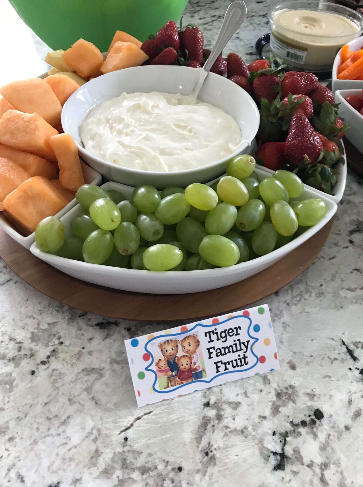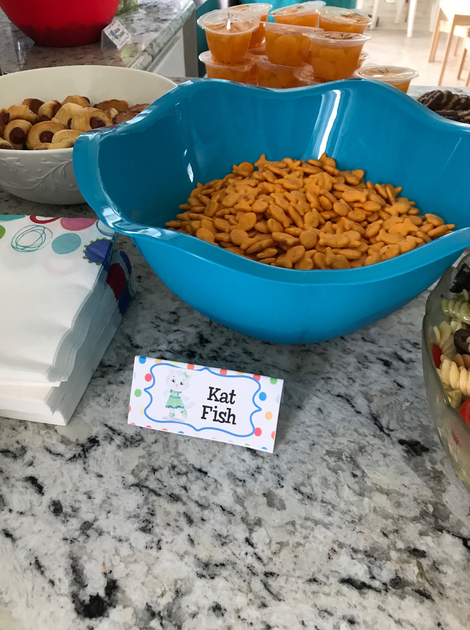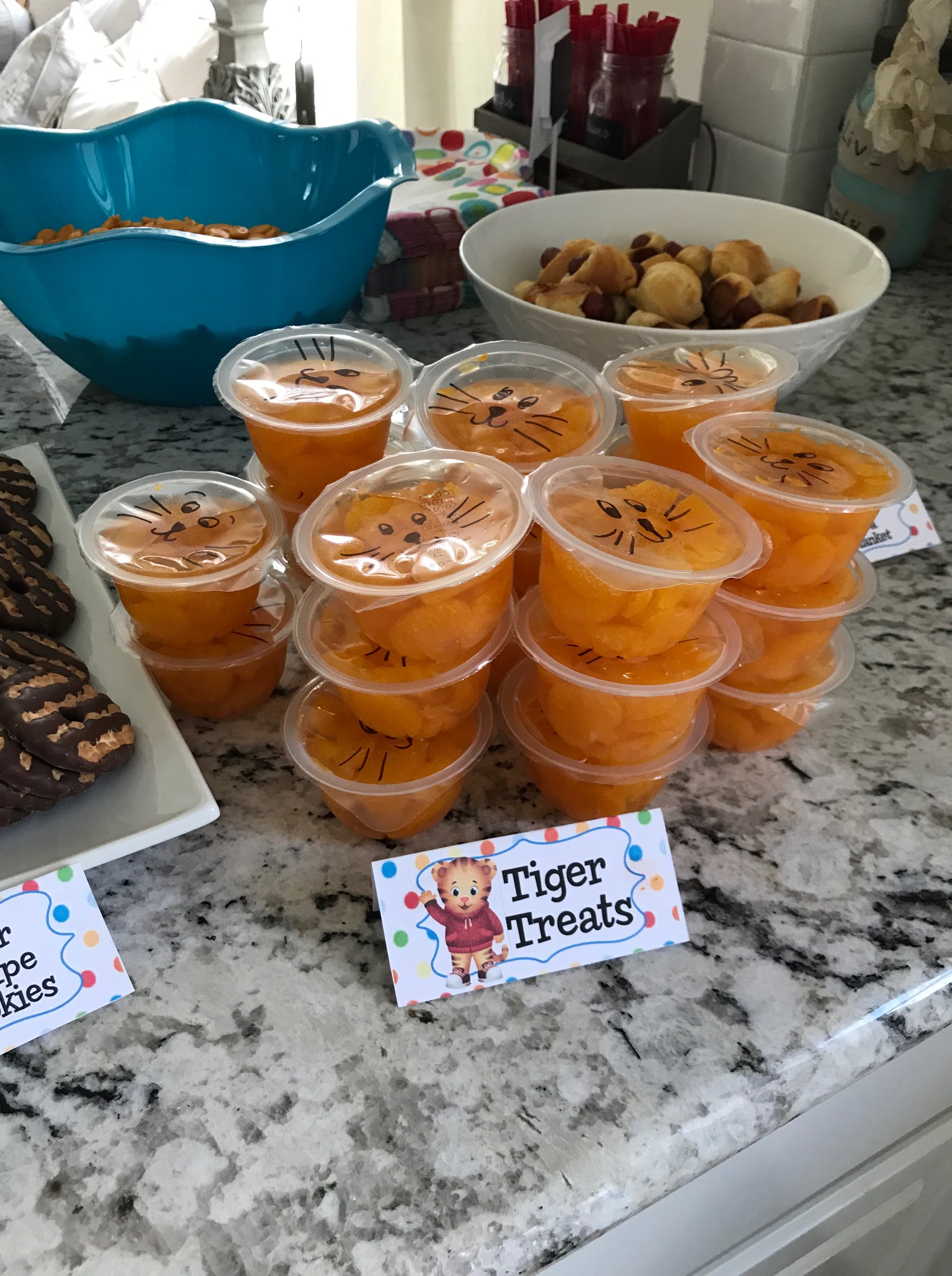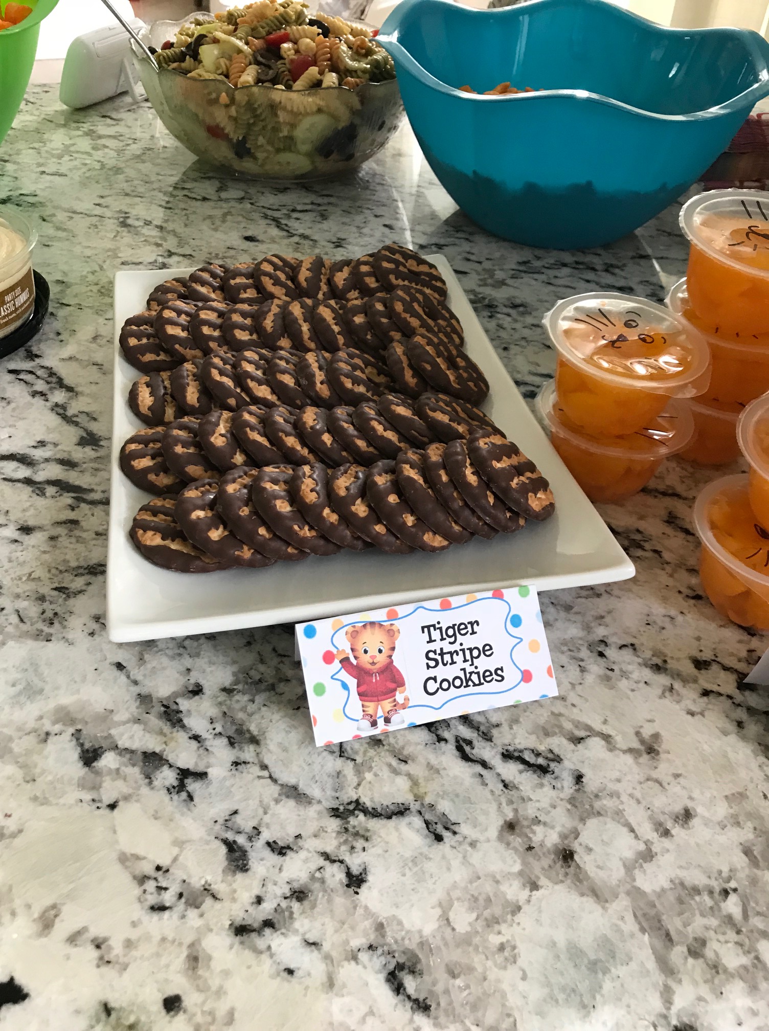 David’s party was at 11 in the morning so we did simple snack foods and a Chick-fil-a tray. I made food labels with the Silhouette software and added some of Daniel Tiger characters to make them festive, pictured below.