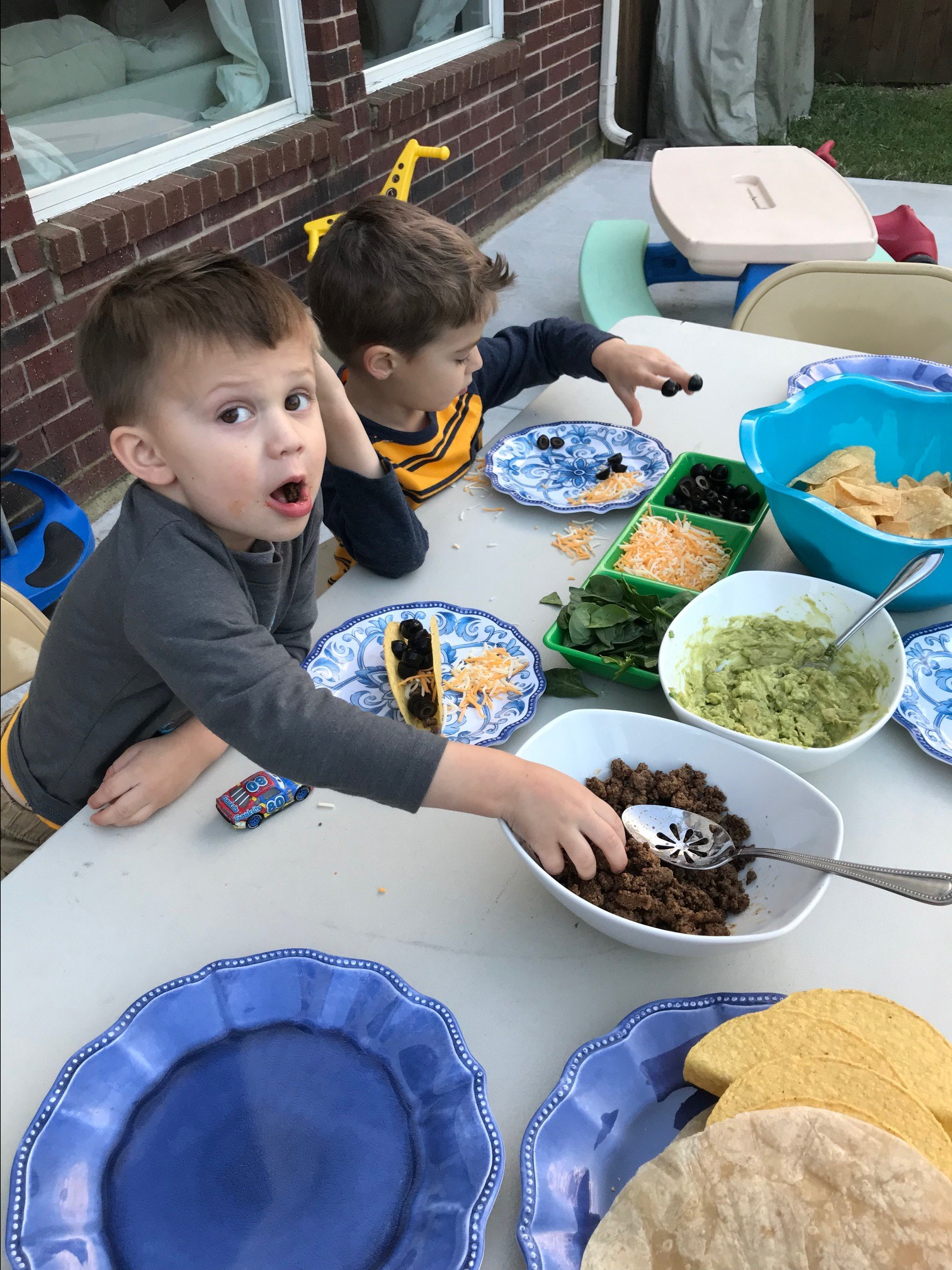 If you look closely, you can see the boys have these fun little Animal Food Tooth Picks/fork toothpicks to eat with. Sometimes if you have a picky eater, handing him one of these little cute forks will do the trick!