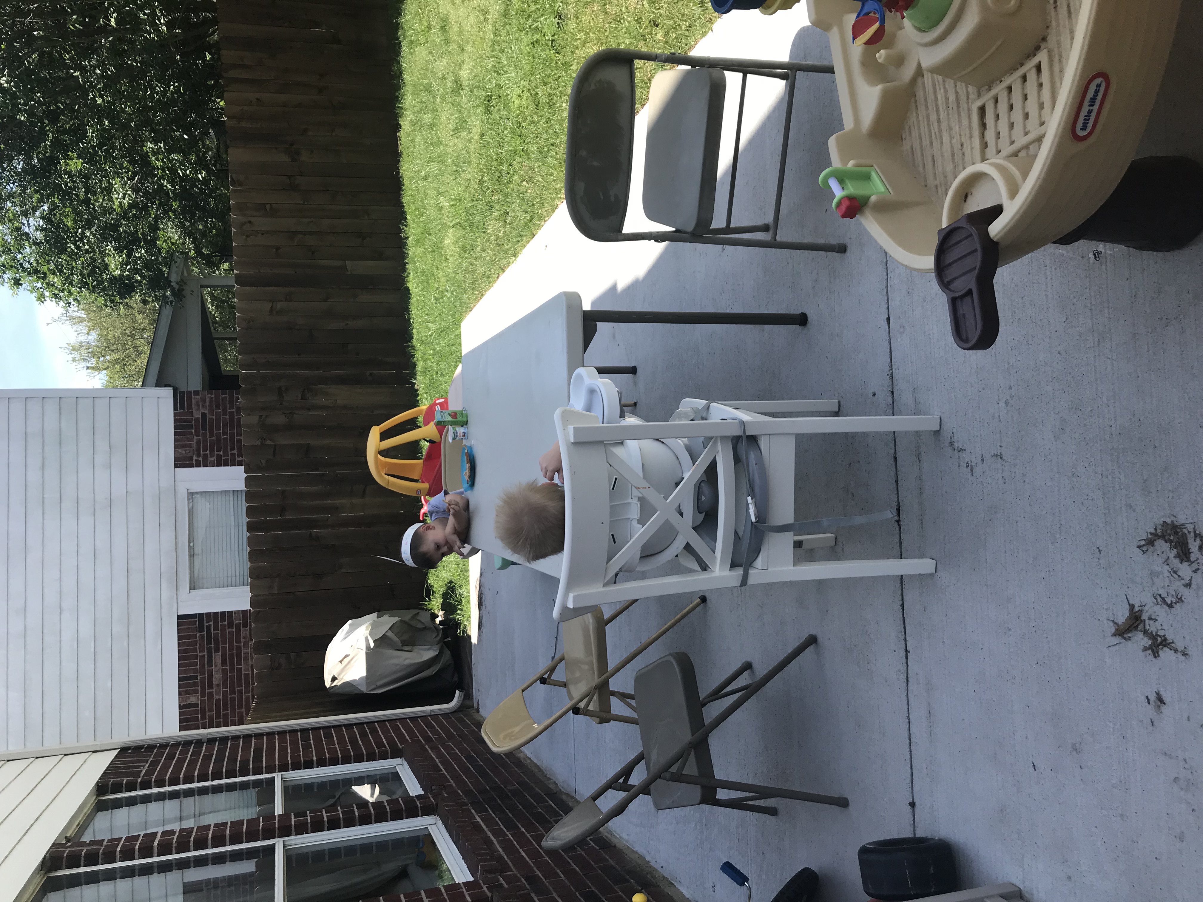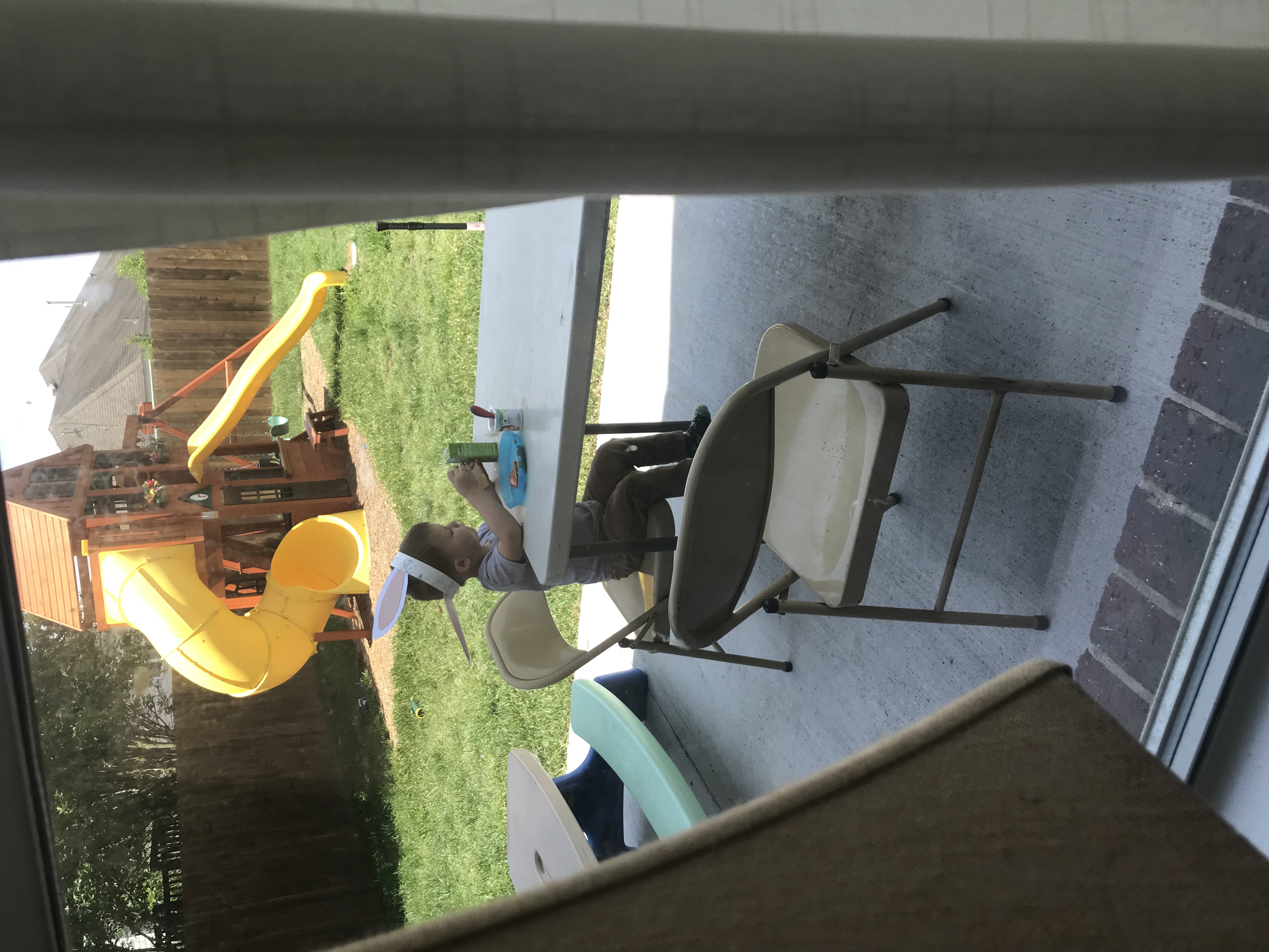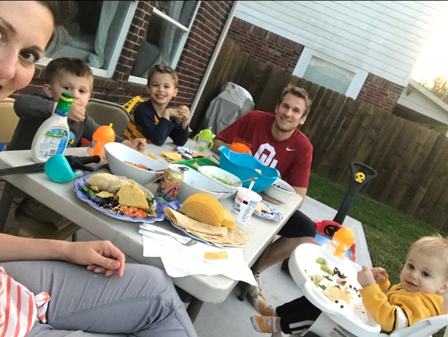 I have so been loving this beautiful weather. For the first few months of the year the sun did not shine except for maybe 5 days. It was horrible, and so very depressing. The last few weeks of April have been such a gift. We’ve loved being outside- enjoying the plates backyard, David’s new swing, family bike rides, dinners on the patio – even when it is so very less-than perfect. I cannot wait to furnish our patio with some beautiful furniture- a sitting space and a dining space and of course figure out some shade solution and way to hang the outdoor lights I’ve wanted for at least five years. But, the Lord is teaching me to embrace where I am and to realize that it doesn’t have to be “perfect” (or even very aesthetically pleasing) to be functional. Perfect is a myth anyway, and so is the lie, “If only this, then…..” Our boys love eating outside on our very old hand-me down fold out table and chairs, and I don’t think they really even know the difference.