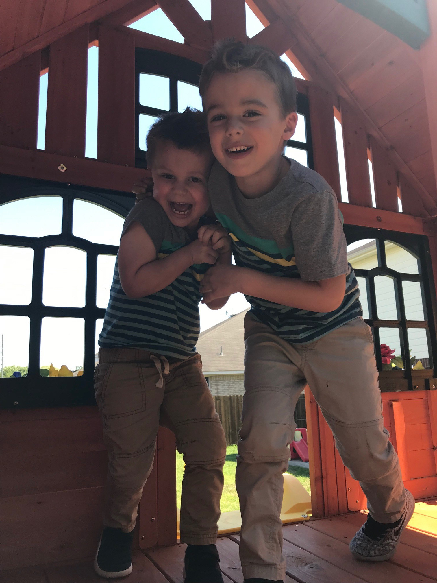 13. Brothers in matching shirts-
