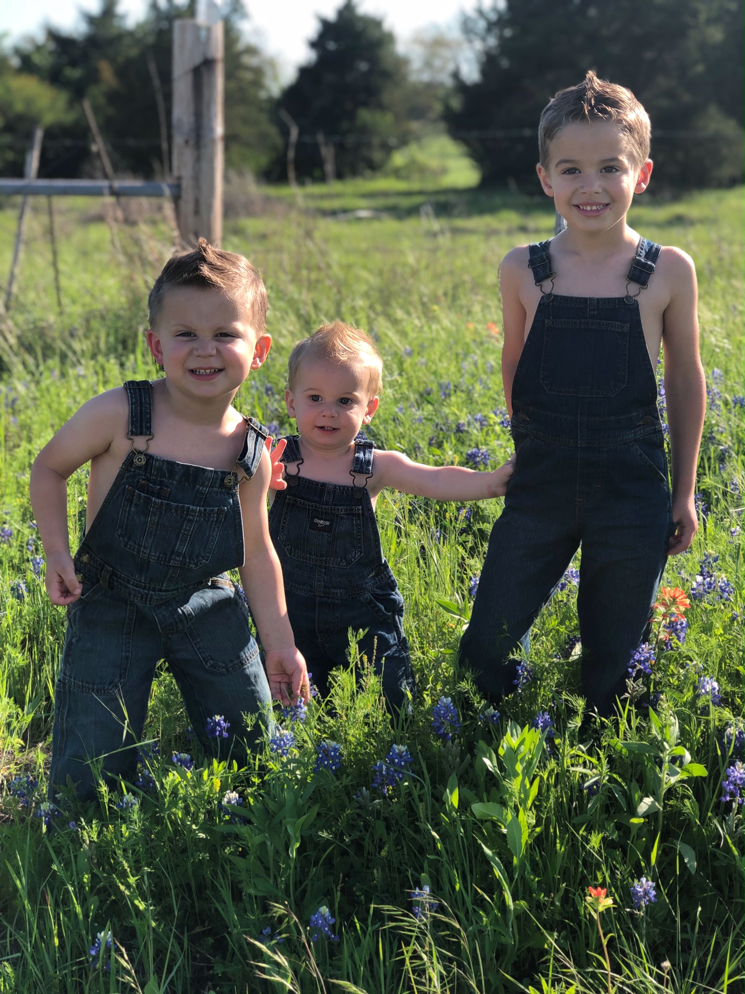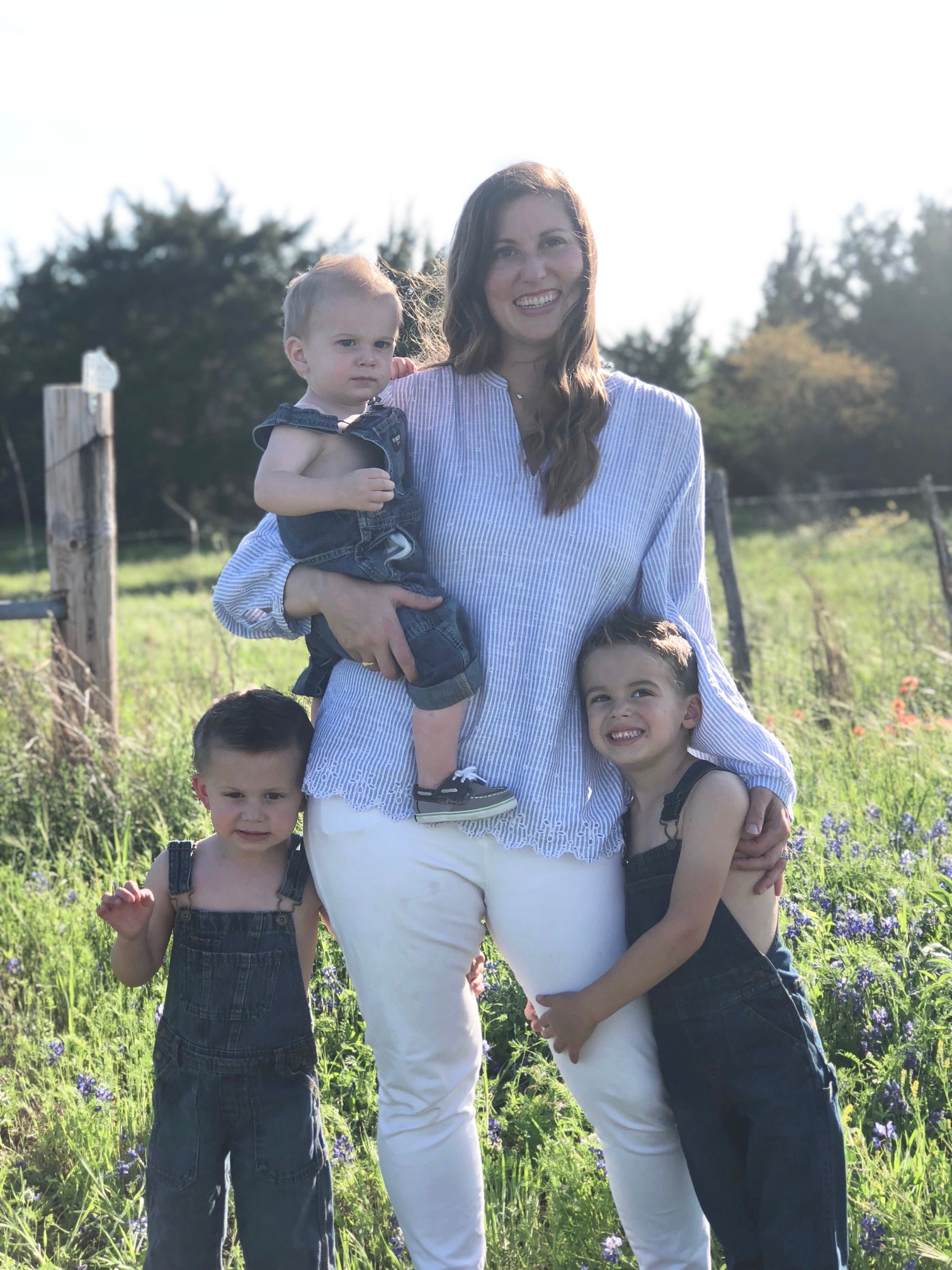 This is a tradition in Texas. Bluebonnets, our state flower, line the highways in mid March- early April, and we have a goal of taking pictures each year in them. Sadly, our go-to place didn’t have any this year so we found a second option to snap a few shots. I originally bought the overalls our second 2nd (3) and baby (1) are wearing a couple years ago for our oldest (then 2.5) and second (then 1). Sadly we drove all the way out to the country to take some pictures only to realize I forgot to put the overalls in the bag. #majorfail. I was so sad I had forgotten the overalls I had purposefully bought just for this photo op. I love when the Lord redeems things, even super small and seemingly silly things like forgotten overalls, and that we were able to use these same pair a couple years later on our 2nd and 3rd instead of our 1st and 2nd.