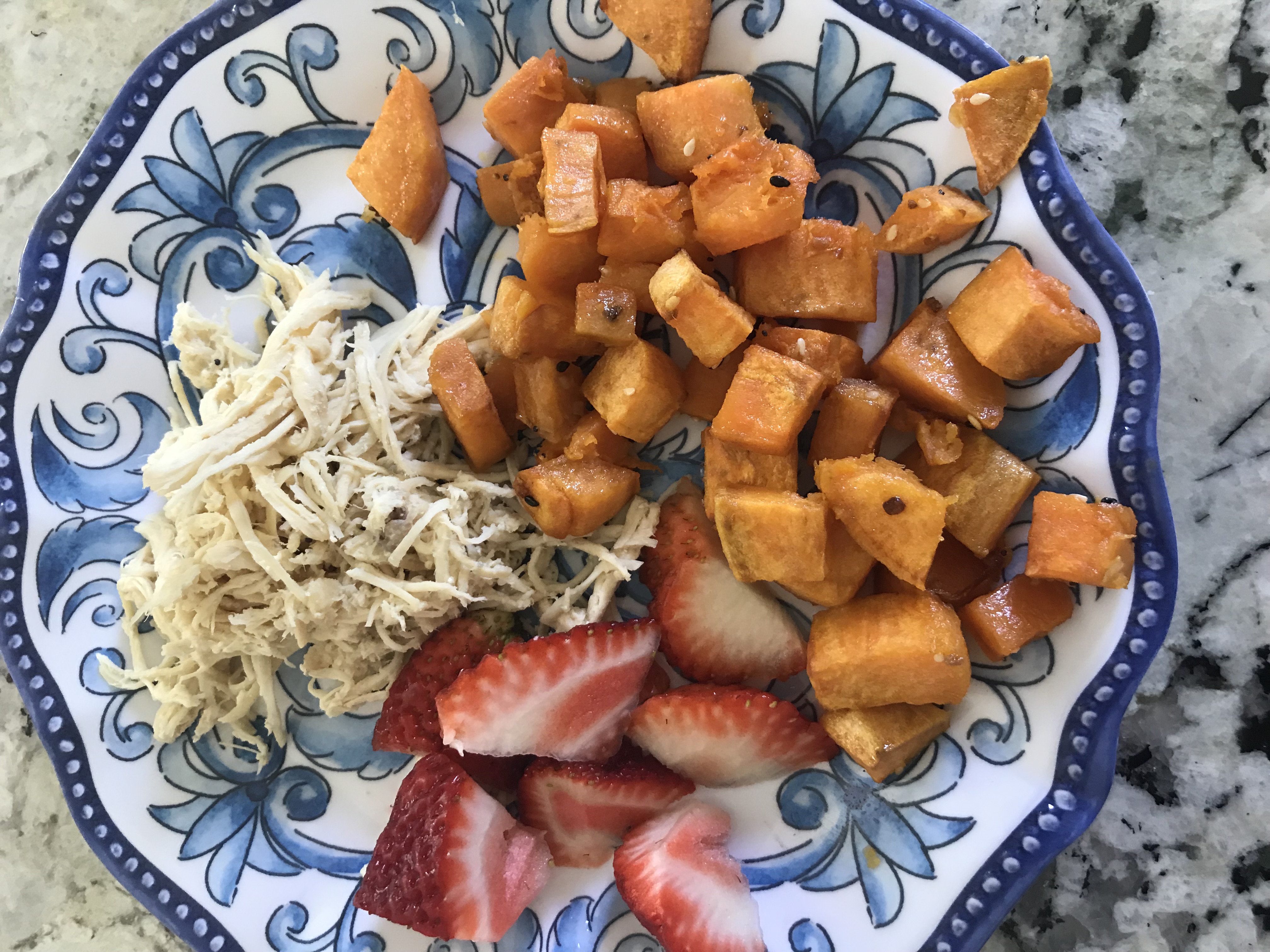 During this time of being away from Social Media, I’ve tried to get better at some basic self-care things (like working out, eating healthy, buying clothes that fit to name a few). I never knew roasted Sweet Potatoes could taste so good. I usually eat random things for lunch and am picking things off my kids’ plates. I never want to make something that takes too long because it seems we are so often in a rush to eat before nap time. But, I finally bit the bullet and started roasting sweet potatoes. A friend mentioned she roasts several veggies at the beginning of the week and has all week to eat on them = brilliant! I just throw a little olive oil, some kosher salt and another new favorite: Trader Joe’s Everything but the Bagel Seasoning. Cook at 400 degrees (or so) for about 20 minutes, stirring a few times so they don’t stick. It’s great paired with Instant Pot shredded chicken, some fruit or avocado toast. Another favorite is my chicken salad.